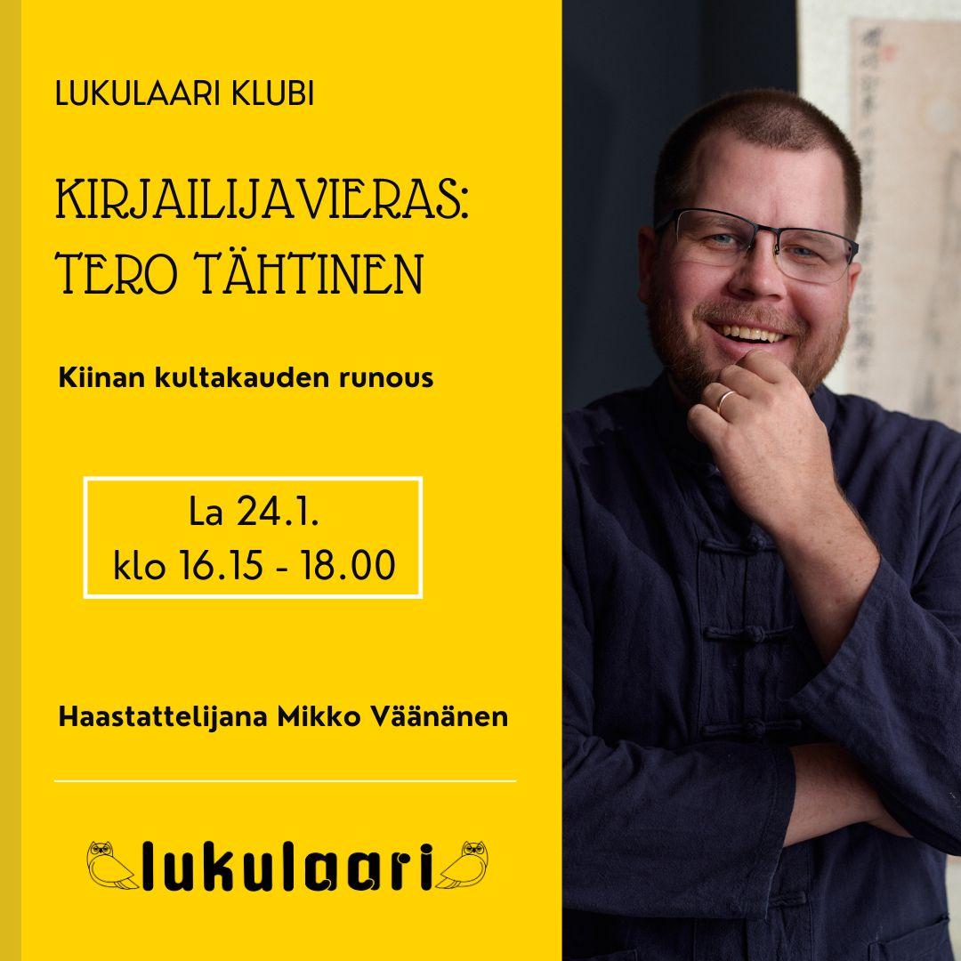 Lukulaari Klubi la 24.1. – kirjailijavieraana Tero Tähtinen