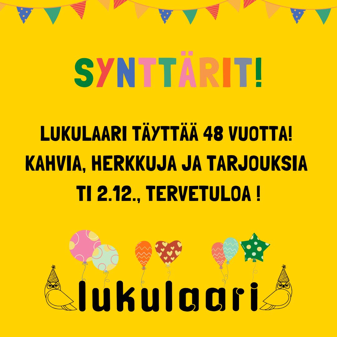 Kalenterit esiin! Lukulaari täyttää joulukuun alussa huimat 48 vuotta! 🥳
