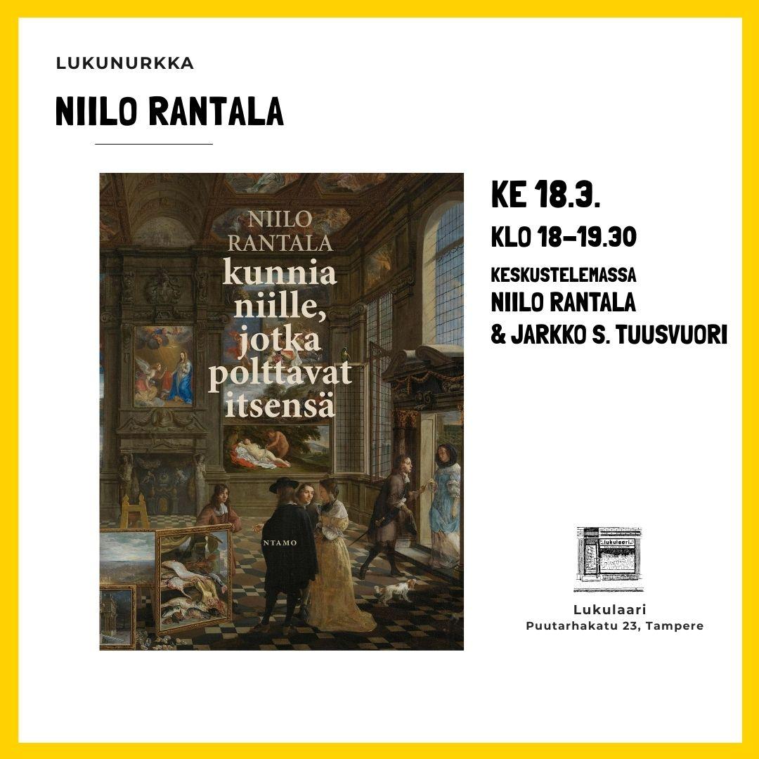 Maaliskuussa Lukunurkassa vietetään Niilo Rantalan Kunnia niille, jotka polttavat itsensä -esseekirjan (Ntamo, 2026) julkkareita 🥂